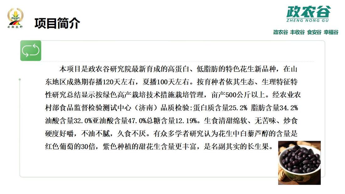 高蛋白低脂肪功能花生技术项目